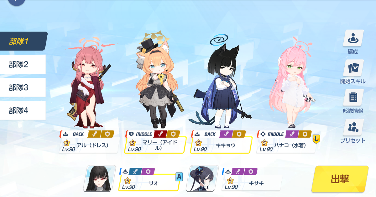 キキョウでデバフをかけて、リオで水着ハナコのスキルをコピーし、本体の水着ハナコ3回+リオスキルコピー1回で一気に削ります。