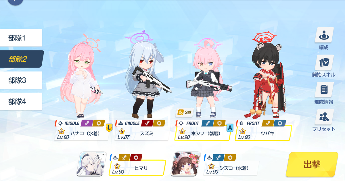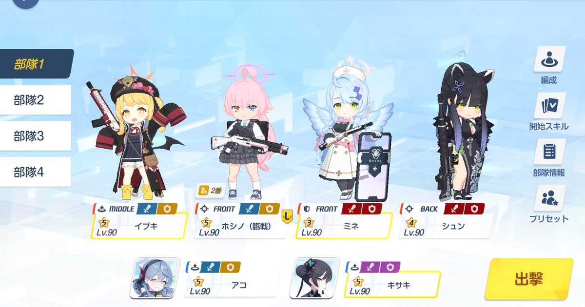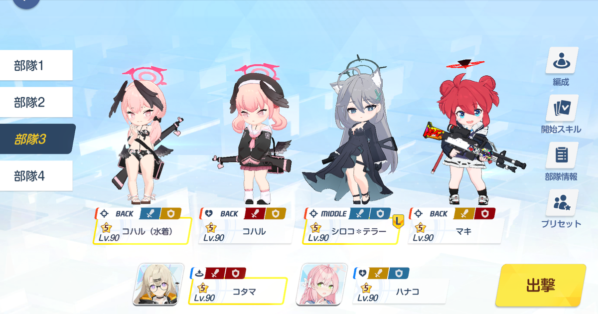 3部隊目はシロコテラーと水着コハルで攻略します。