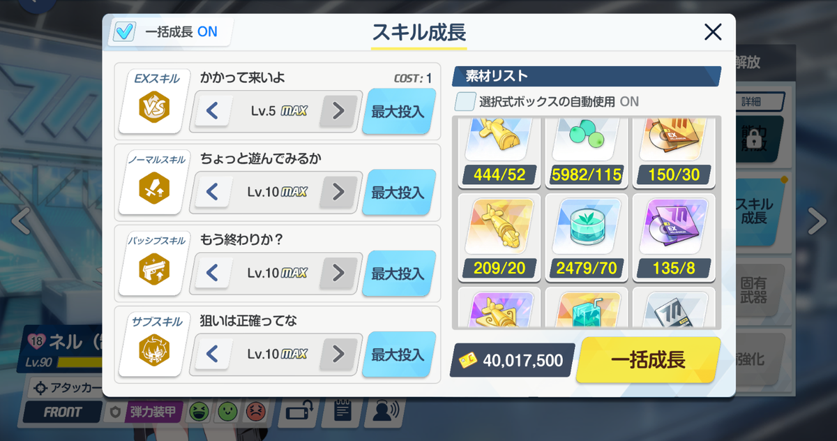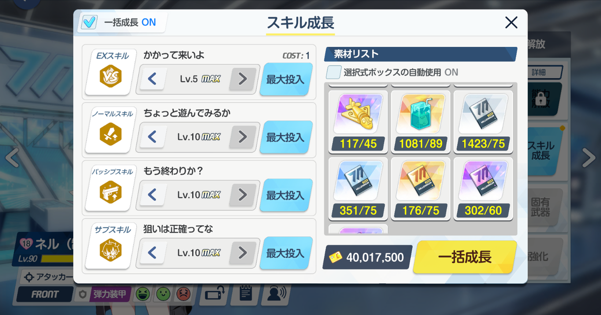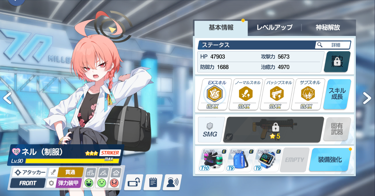 制服ネルのスキルは全て有用で、高難易度では当然ながら全てMAXが前提です。
