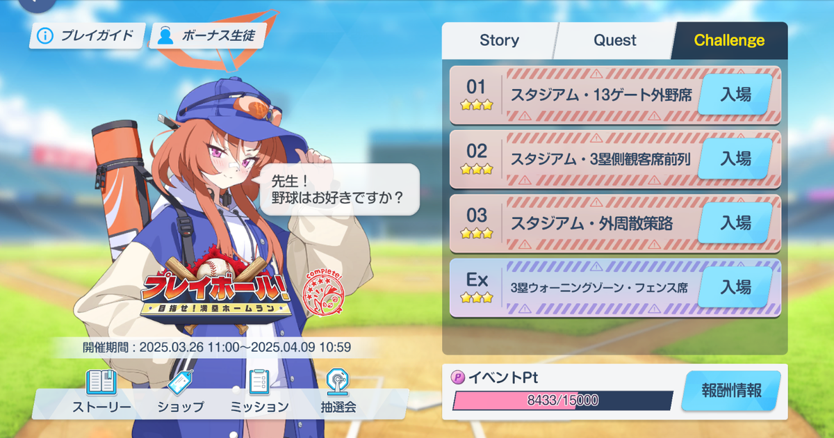 3/27よりイベントのチャレンジクエストが開放されました。