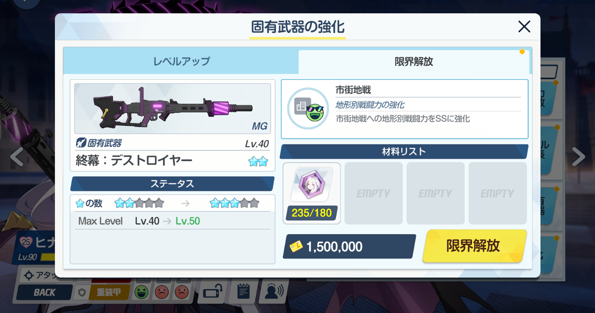 固有3にしたところで「市街地適性SS」なので、屋外SSのように爆発的に火力が上がるわけではないですが、どのみちステータスは高い方がいいですからね。