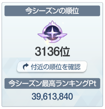 パニショガチャなしでも3960万が取れる(一方で、前半のミリ残しや後半の会心運ゲーもありますが)ので、前回よりスコアが上がるのは間違いないですが、運ゲー要素を排除しても高スコアが狙えるので相対的に易しめに感じます。