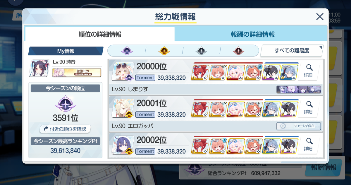 まずは前回の2025年正月のチナトロボーダー(20000位)のスコアが「39,252,160」です。