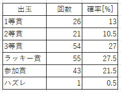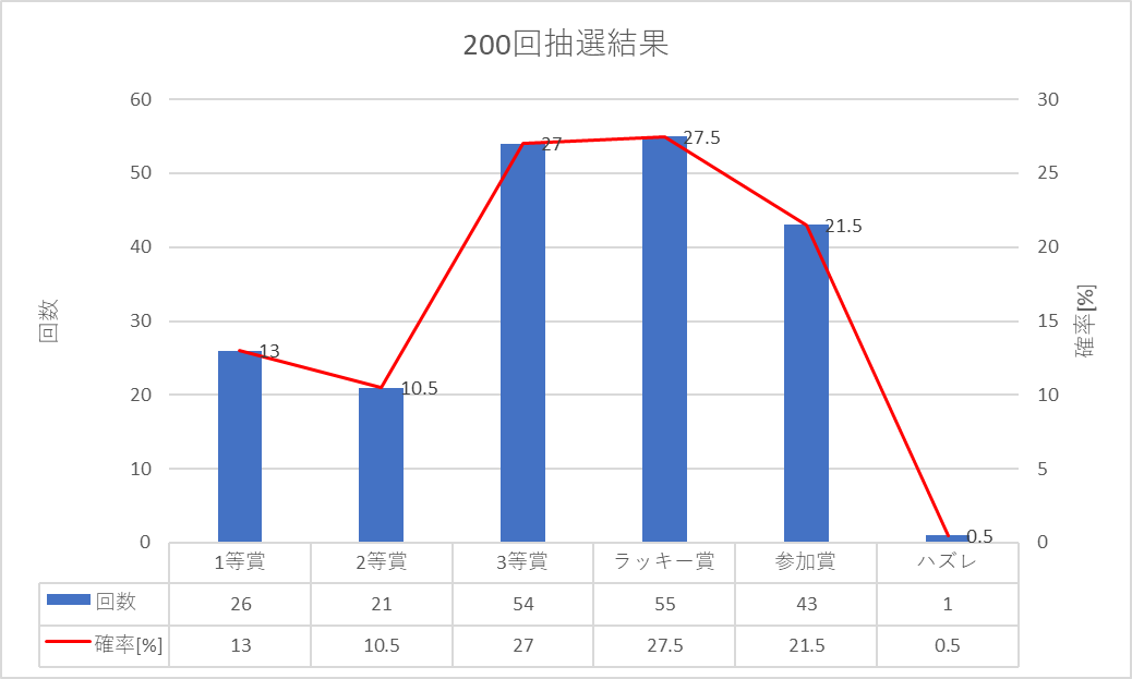 200回抽選の集計結果