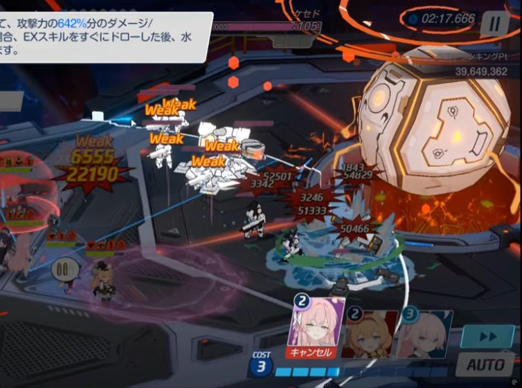 操作が遅いとミカ3回目にバフが乗らない上に敵がグロッキーから回復します。