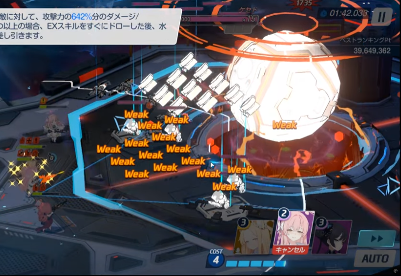 単純にクリアするにしても、そこそこ範囲行為劇キャラが揃っていないといけない上に、範囲攻撃キャラは