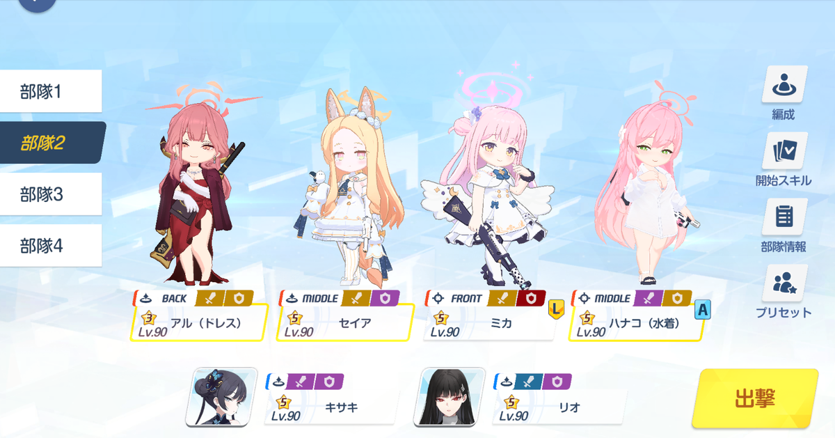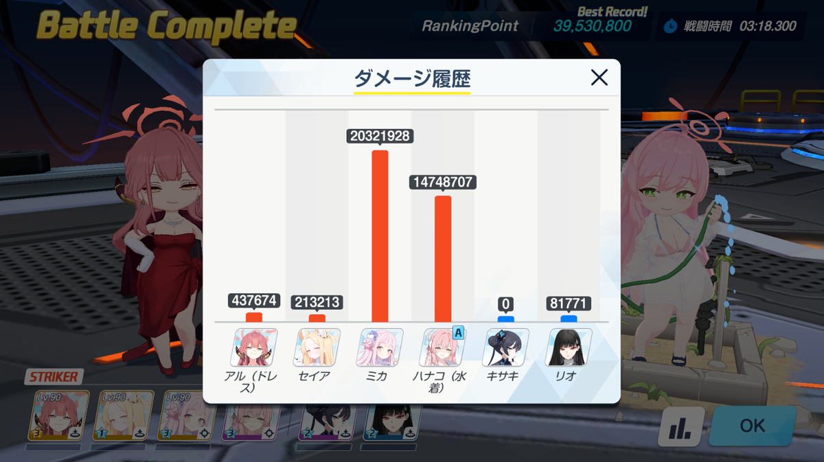 ミカや水着ハナコはフル強化(できれば固有3、T10装備、攻撃WB投入+絆50)推奨です。