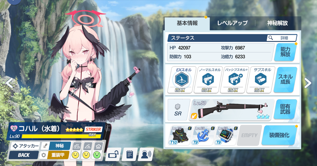 水着コハルや水着ハナコはフル強化(できれば固有3、T10装備、攻撃WB投入+絆50)推奨です。