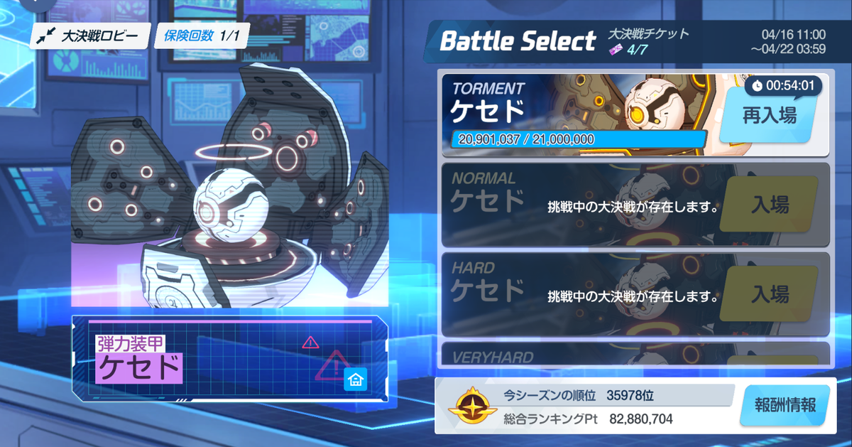 4/16(水)の11時から「大決戦・ケセド」が開催されています。