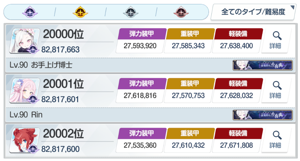 2768万平均になると途端に運要素が絡んできます(3装甲とも2768万あたりから非常にシビア。敵殲滅力と操作の速さと正確性が問われます)。
