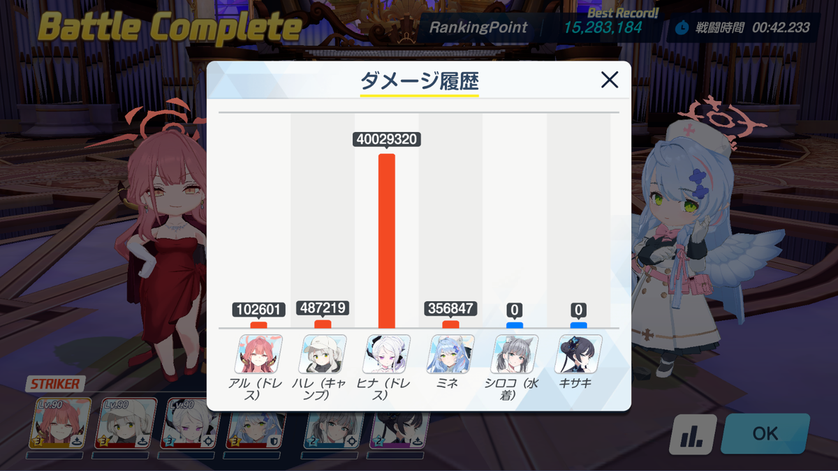 ちょっとスキル回しが遅れましたが、7回ほどでドレスヒナ3発で終了。