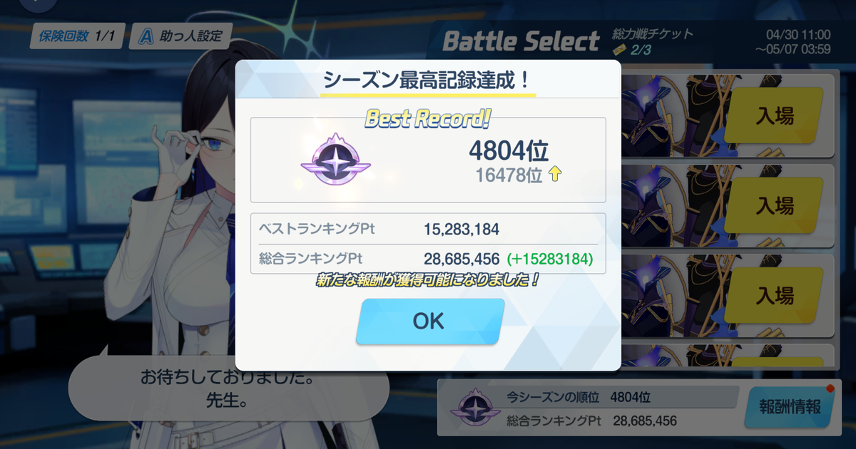 幸い、1分程度で終わりますので、本戦で厳選しましょう。
