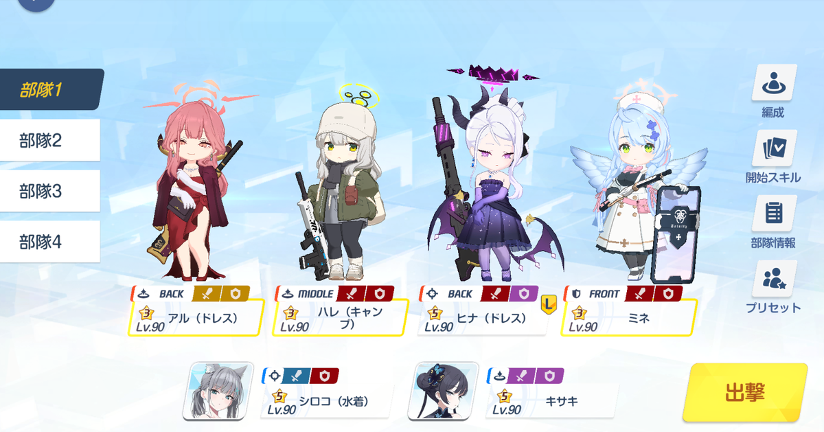 ドレスアルに会心ダメージを任せて、ハレキャンで攻撃バフ、キサキでEXバフをします。