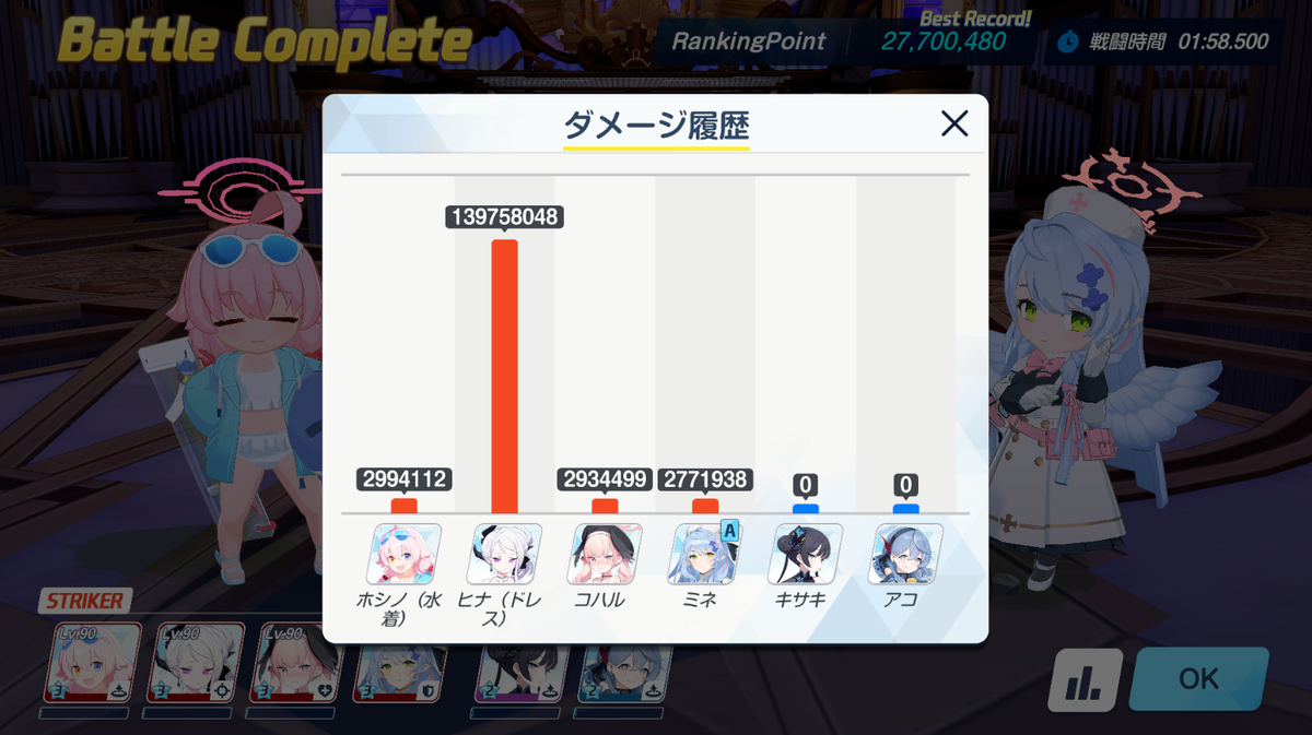 うまくいかなくても更にバフをかけたドレスヒナ1セットで終わります。