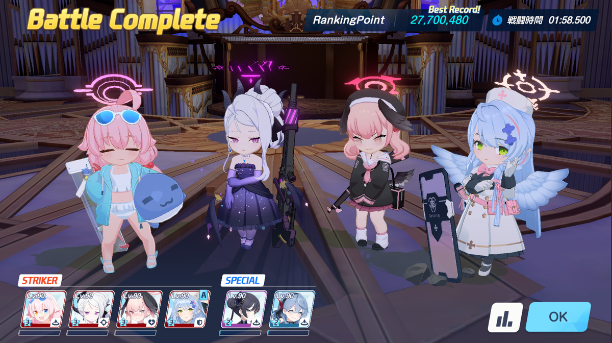 LunaticではSTRIKER軸(今回は軽装備なのでドレスヒナ軸)とSPECIAL軸が必要でしょうね。