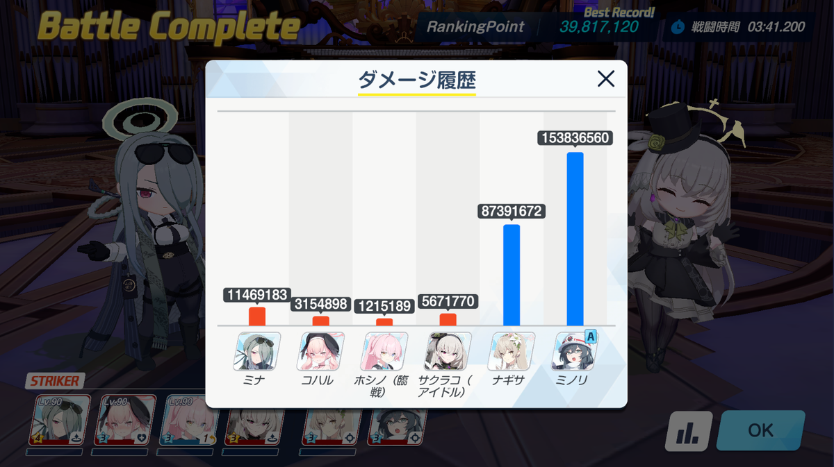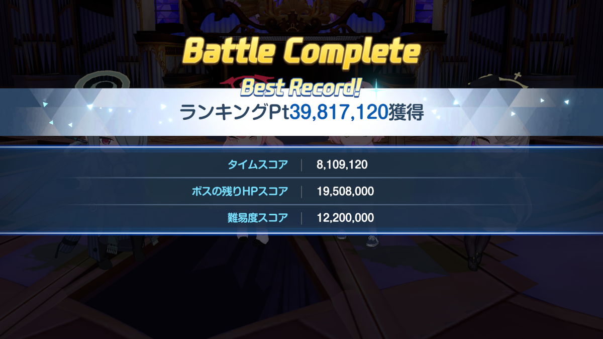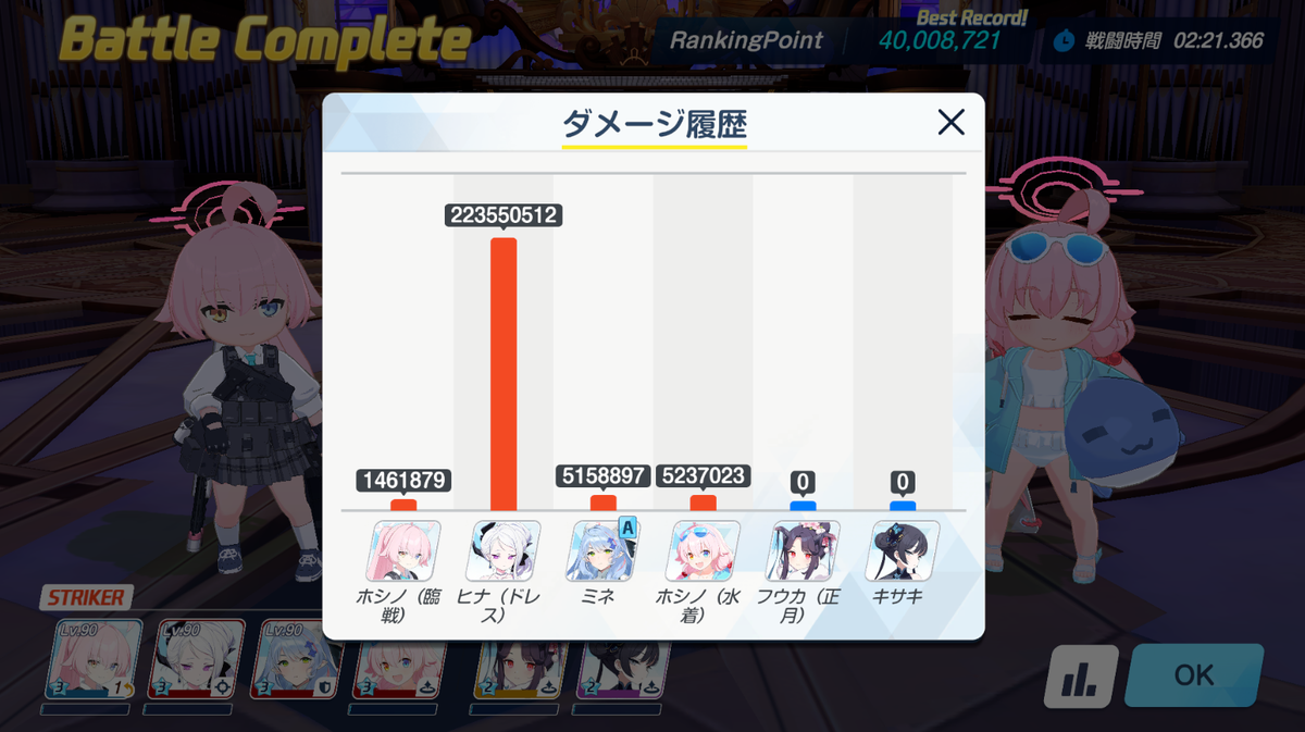 スキル回しを工夫すれば通せていたかもしれません(ドレスヒナ落ちそうになって慌ててキサキ使用せずにドレスヒナを使用)。