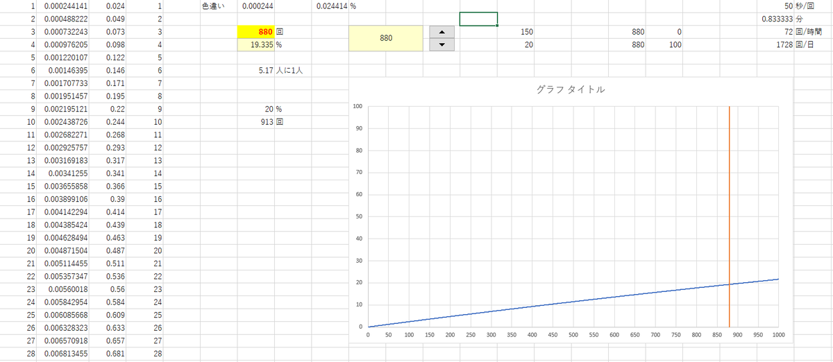 ちなみに1000回ほどやっても確率は1/5と低いです。