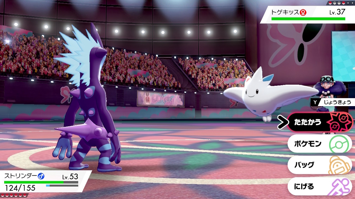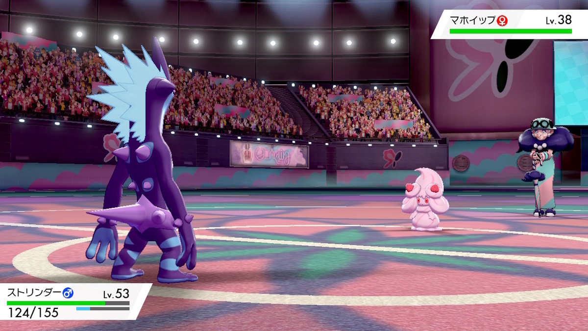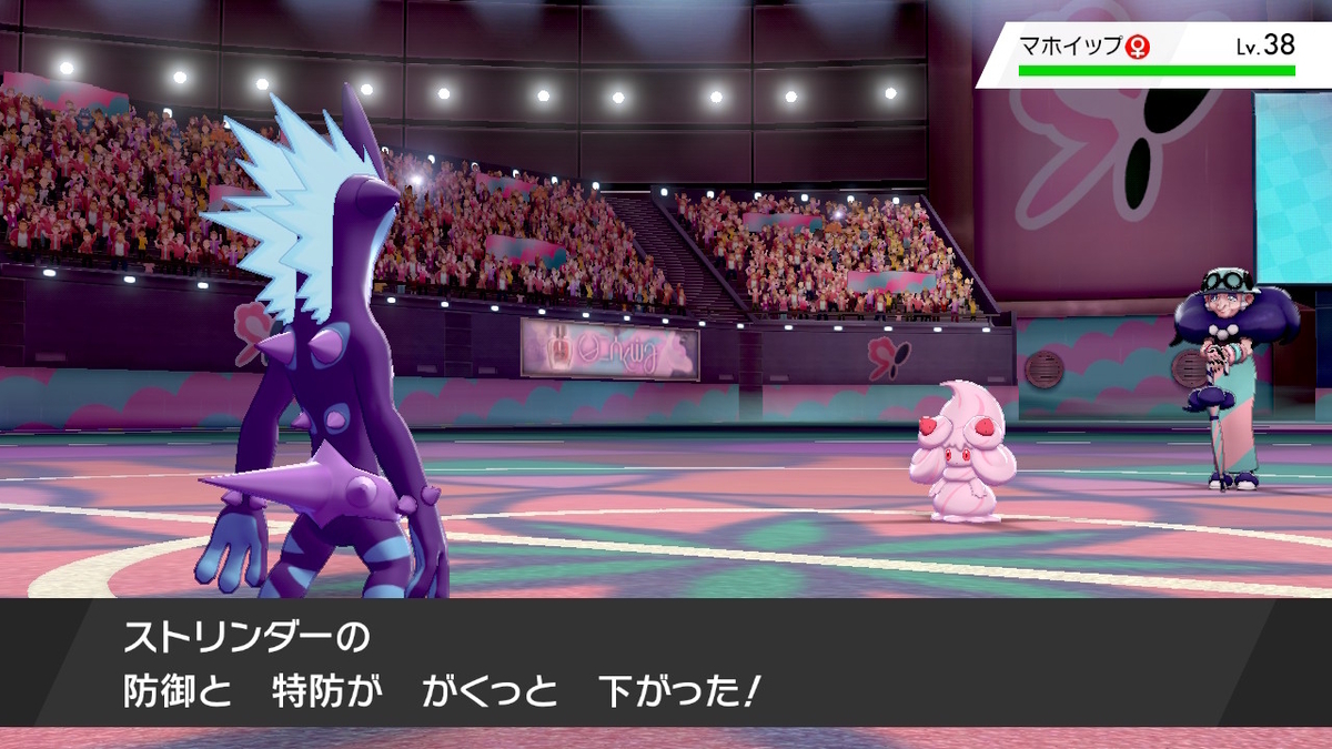 前回のジムから考えれば35~40レベル程度の相手でしょうし、こちらはレベル50オーバーなので弱点を突けば思いっきり能力を下げられても十分勝てます。