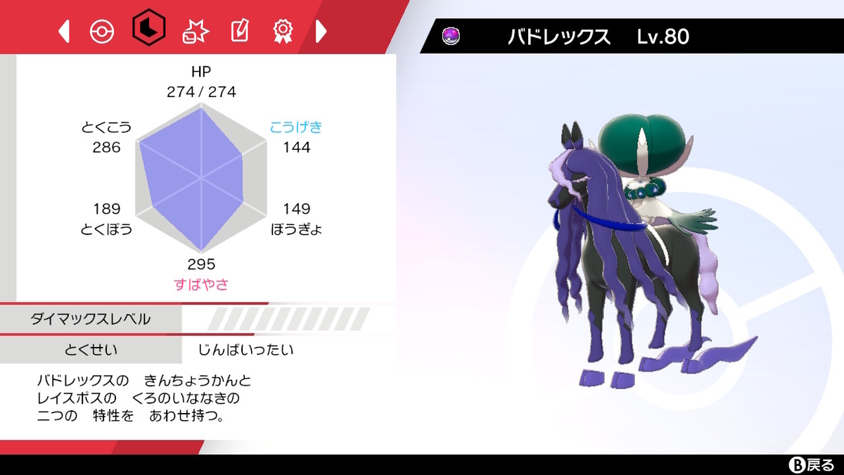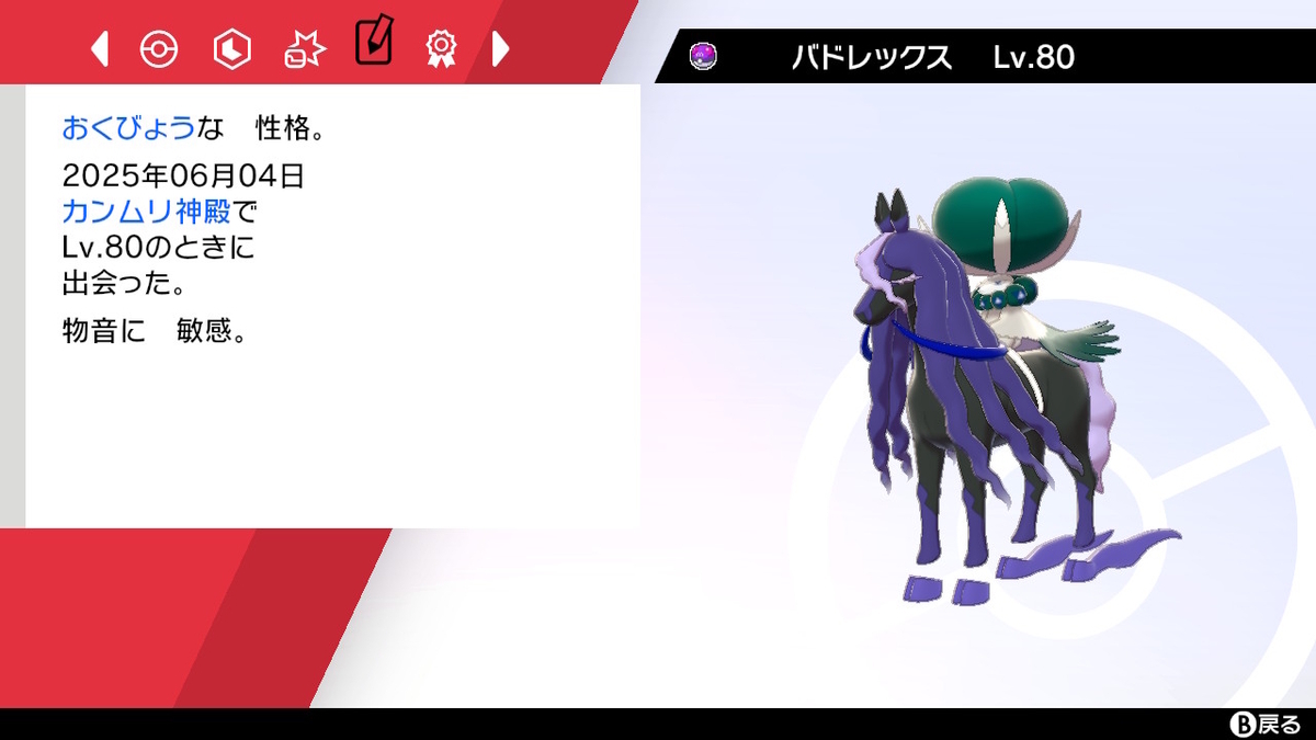 ついでに剣盾以降の環境で常に対戦上位に入る「黒馬バドレックス」を入手します。
