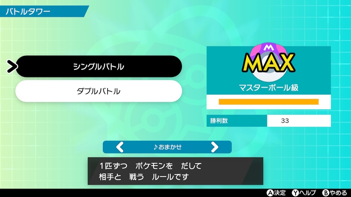 あとは、ぬるくなりすぎたバトルタワーで勝ちまくってマスターボール級にします。