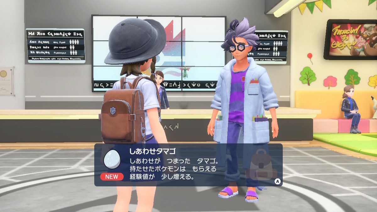 経験値アップアイテムである「しあわせタマゴ」がもらえます。