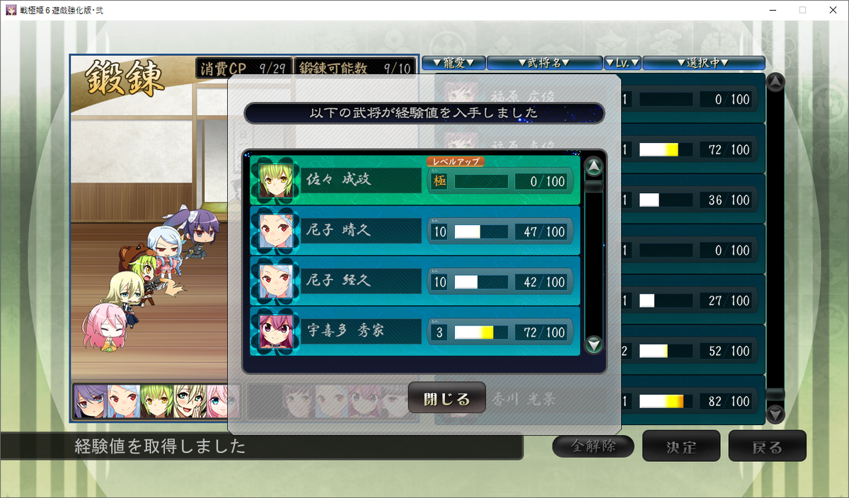 CPが余りまくっているのでモブ武将も内政のために鍛錬させています。