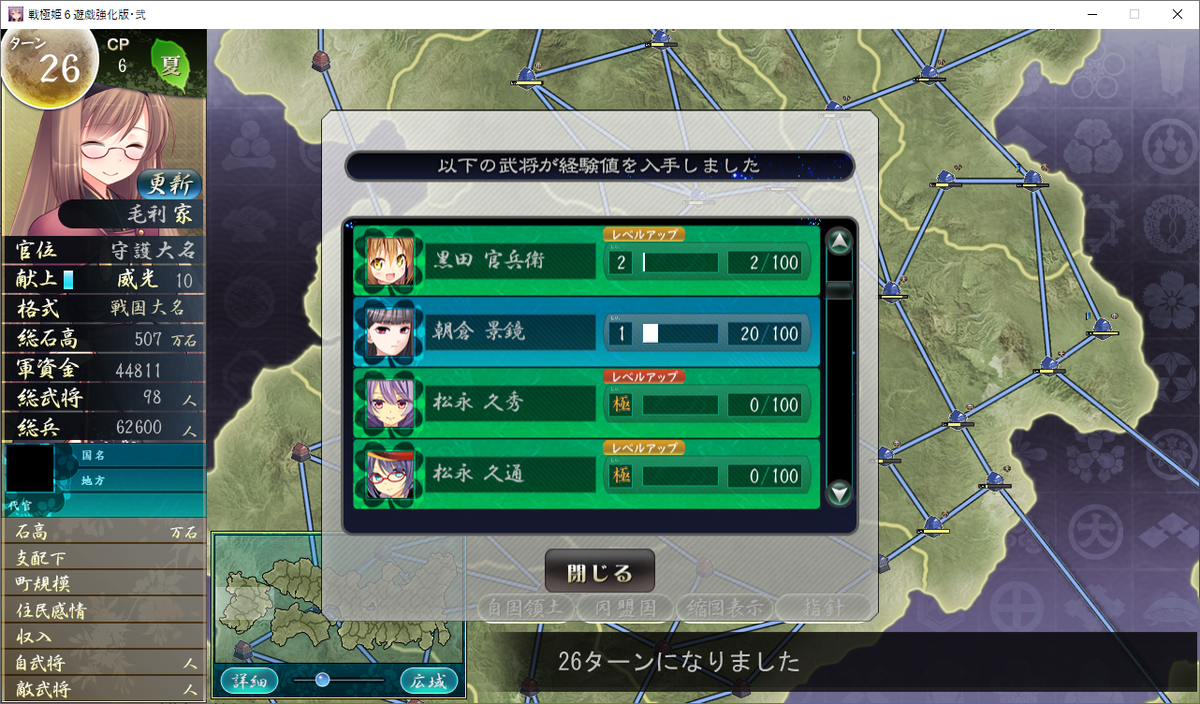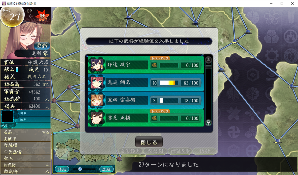 伊達政宗、吉見正頼、冷泉隆豊がレベル極に。