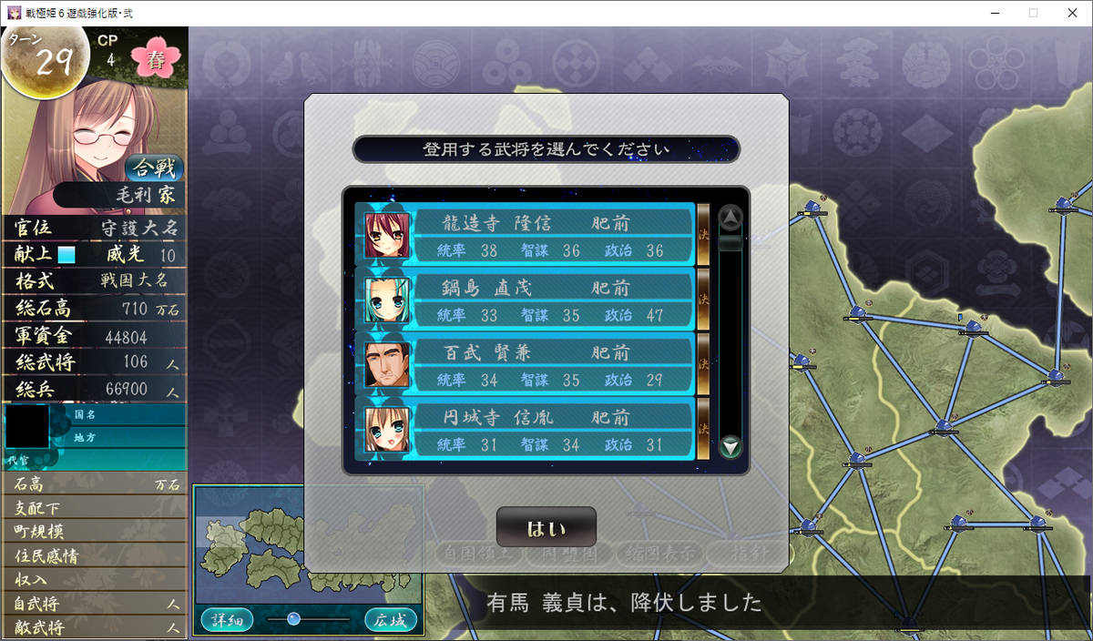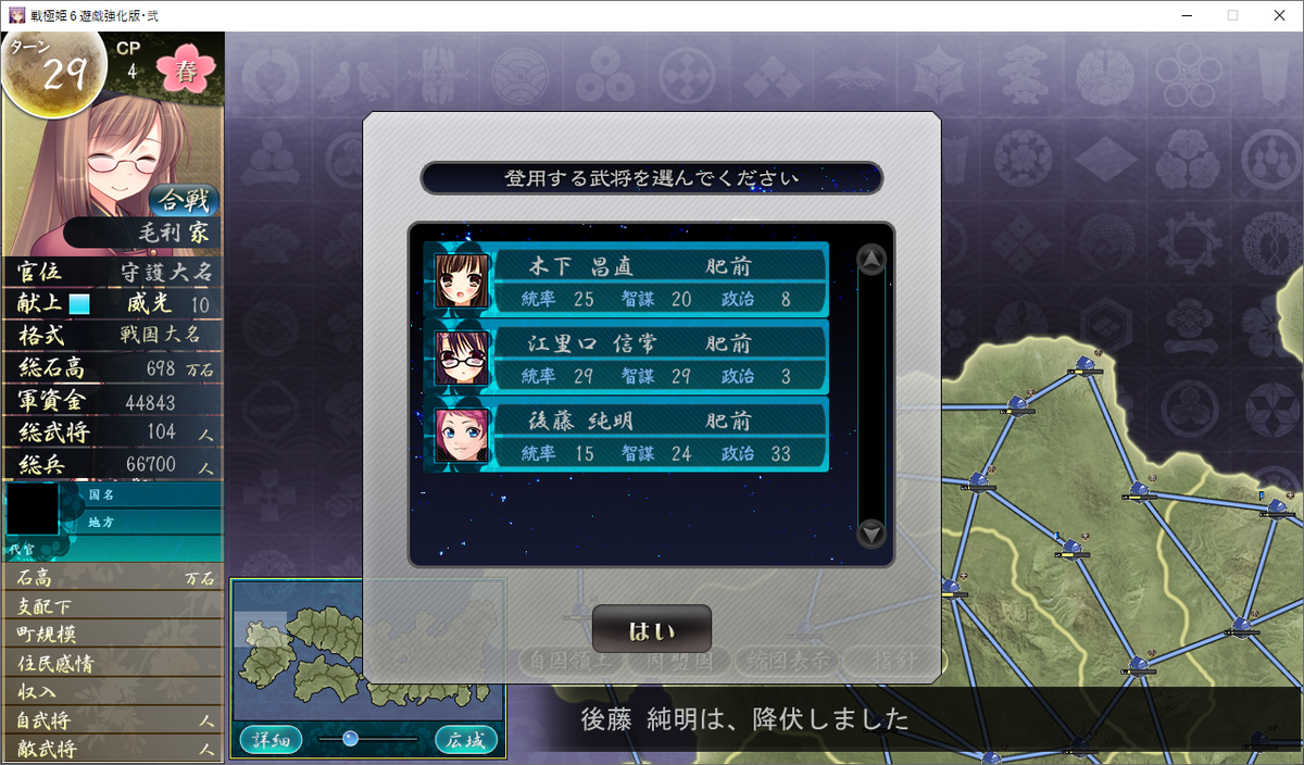 それでも防衛する箇所は防衛しつつ、九州地方を中心に攻めていきます。
