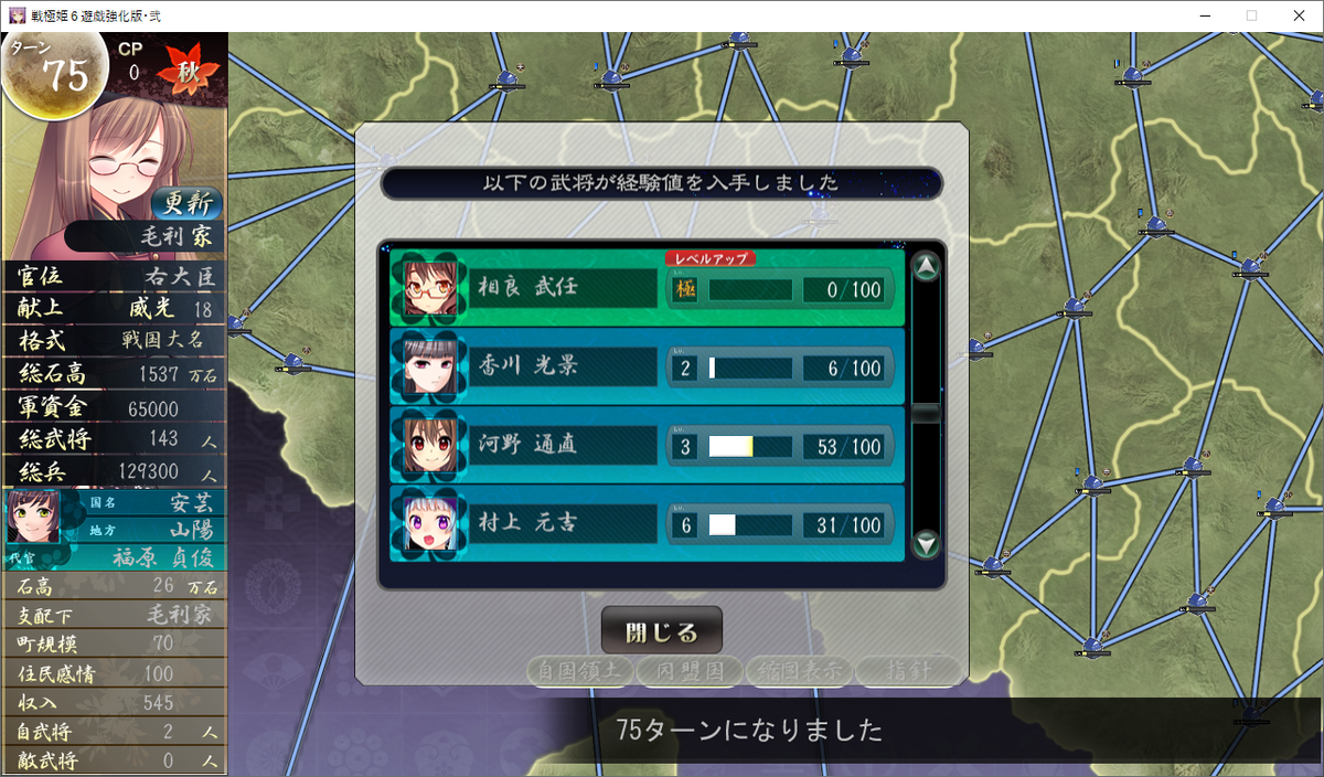 【戦極姫6】毛利家ルート攻略手順⑲【71ターン目~75ターン目まで】