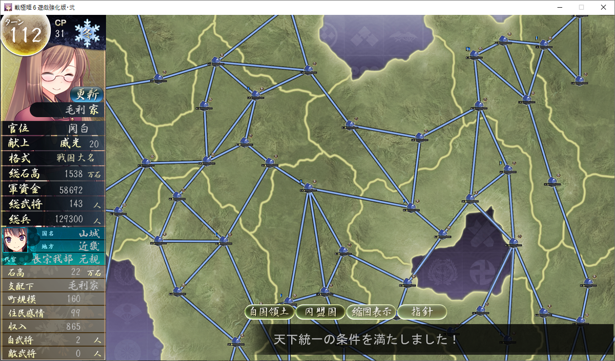 【戦極姫6】毛利家ルート攻略手順㉖【106ターン目~天下統一宣言・クリアまで】