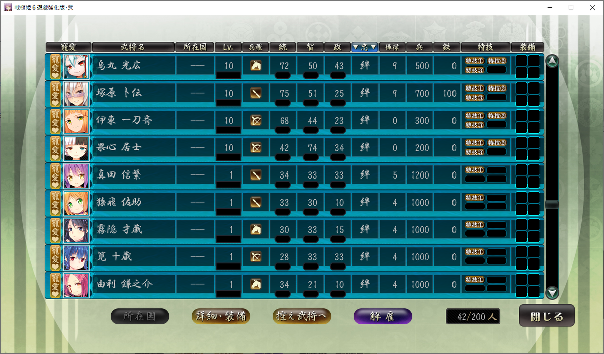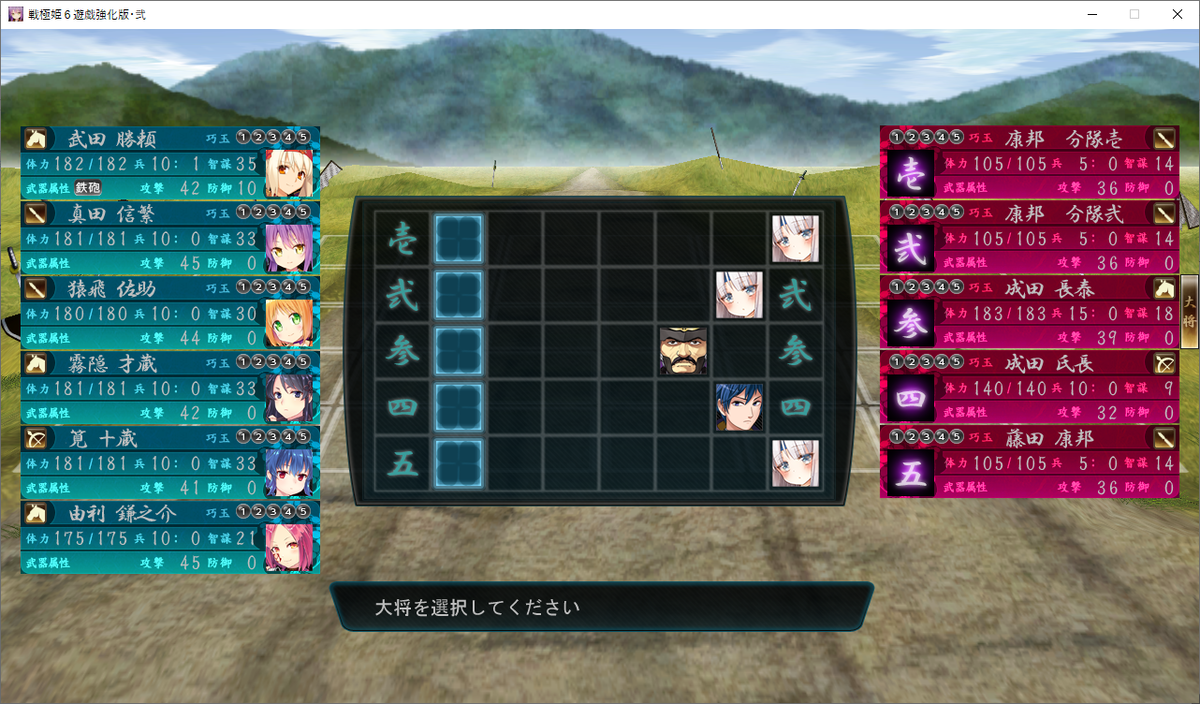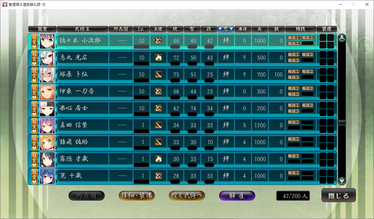 それでも真田十勇士を選んだのは、後の真田家を攻略する時に、スタートダッシュを有利にするためです。