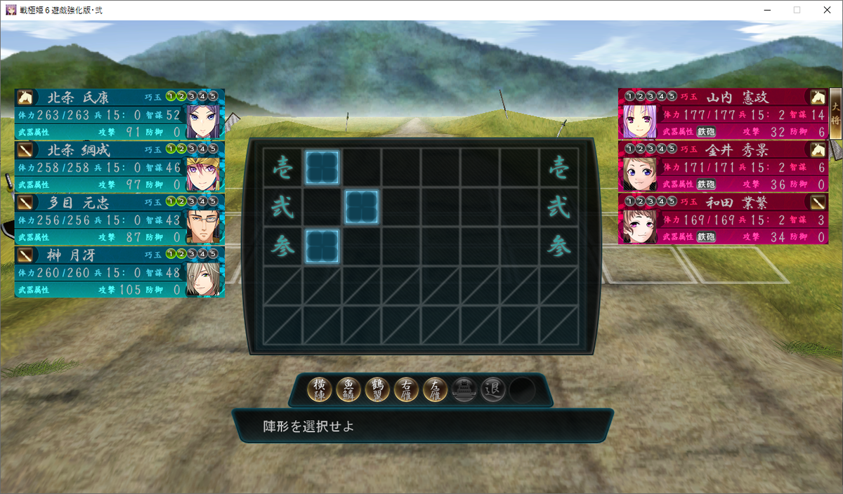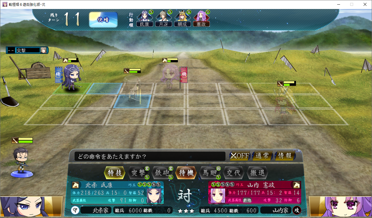 山内憲政がなかなか近づいてこず、モブ武将が近づいてきたので、突撃で敗走させました(2回の突撃で十分敗走させられます)。