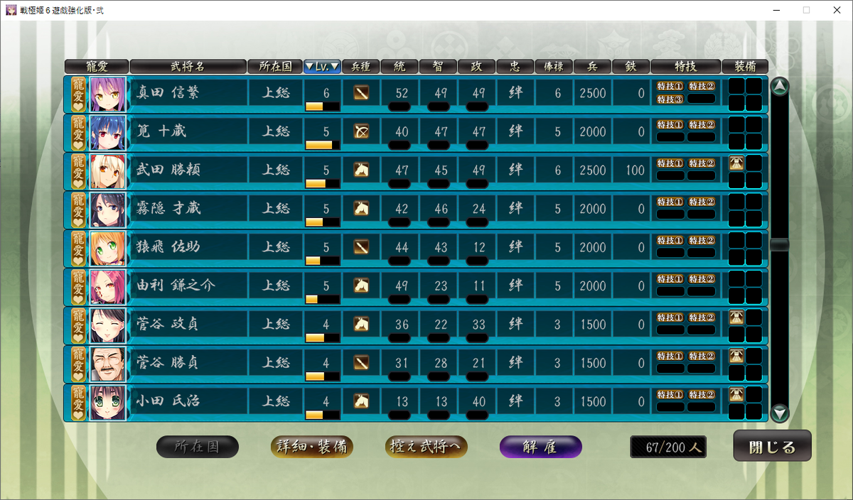 小田家の面々は基本最前線に出したとしても兵数差で圧倒させたいところなので、レベルは控えめでもいいかもしれませんが。