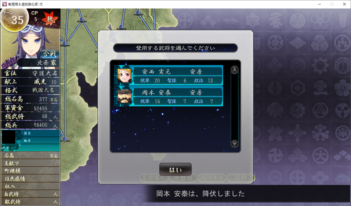 能力値に関して言えば、小田氏治よりかはマシ程度です。