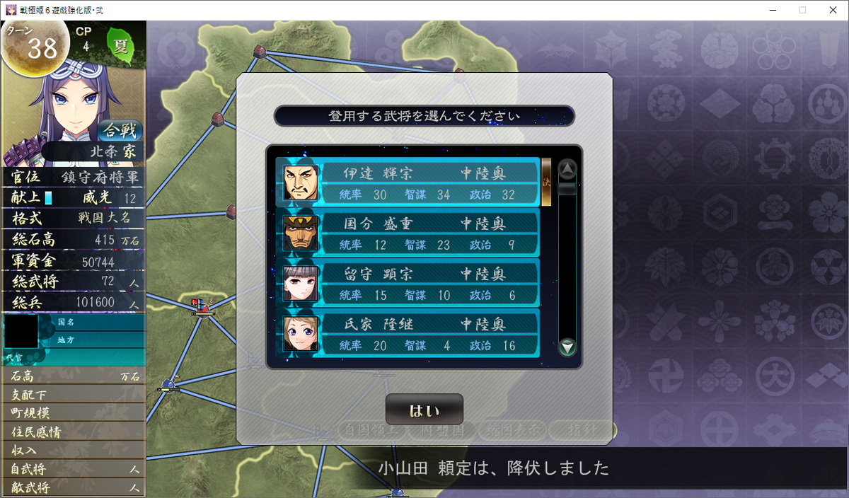 【戦極姫6】北条家ルート攻略手順⑭【4ヶ国開放~39ターン目】