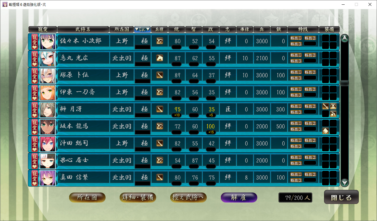 統率が大台の80に到達、智謀が76、政治75と全方面に隙がありません