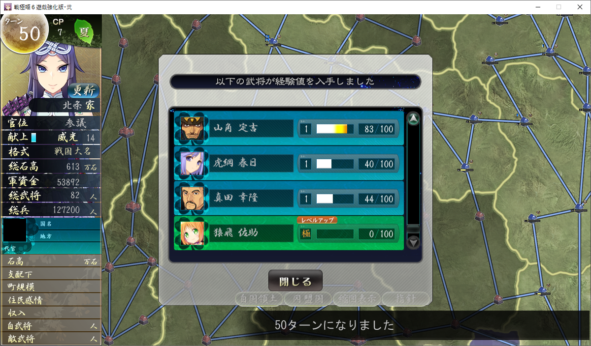 【戦極姫6】北条家ルート攻略手順⑳【50ターン目~レベリング第3弾①まで】