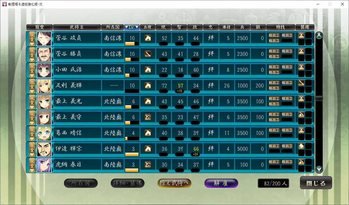 南部信直と北信愛は能力値が低いのでユニーク武将という以外に取り柄はありませんが。