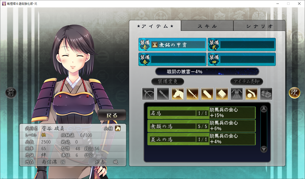 智謀は50未満、政治は56と平均的な数値に収まっています。