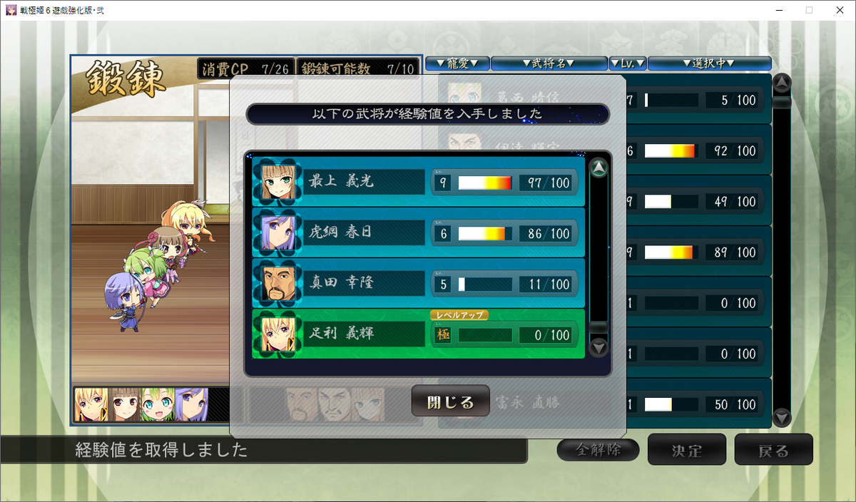 このターンの鍛錬で足利義輝がレベル極になりました。