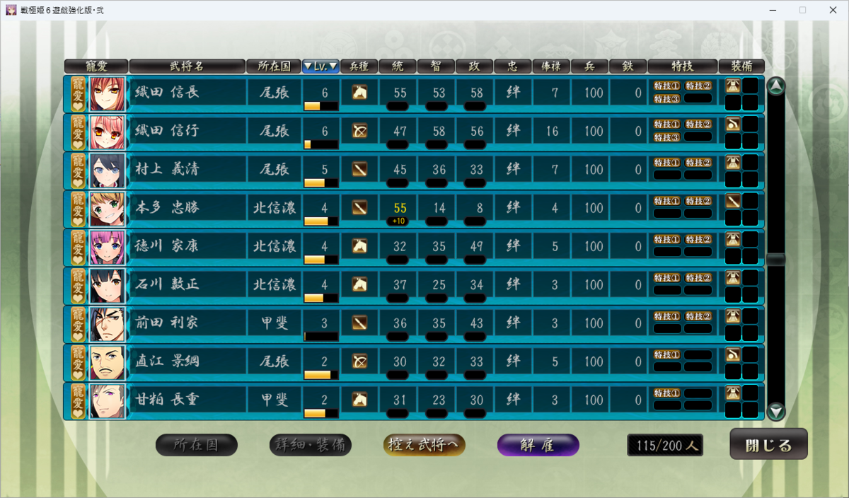 武田信玄、武田信廉はレベル10で打ち止めでしたね。