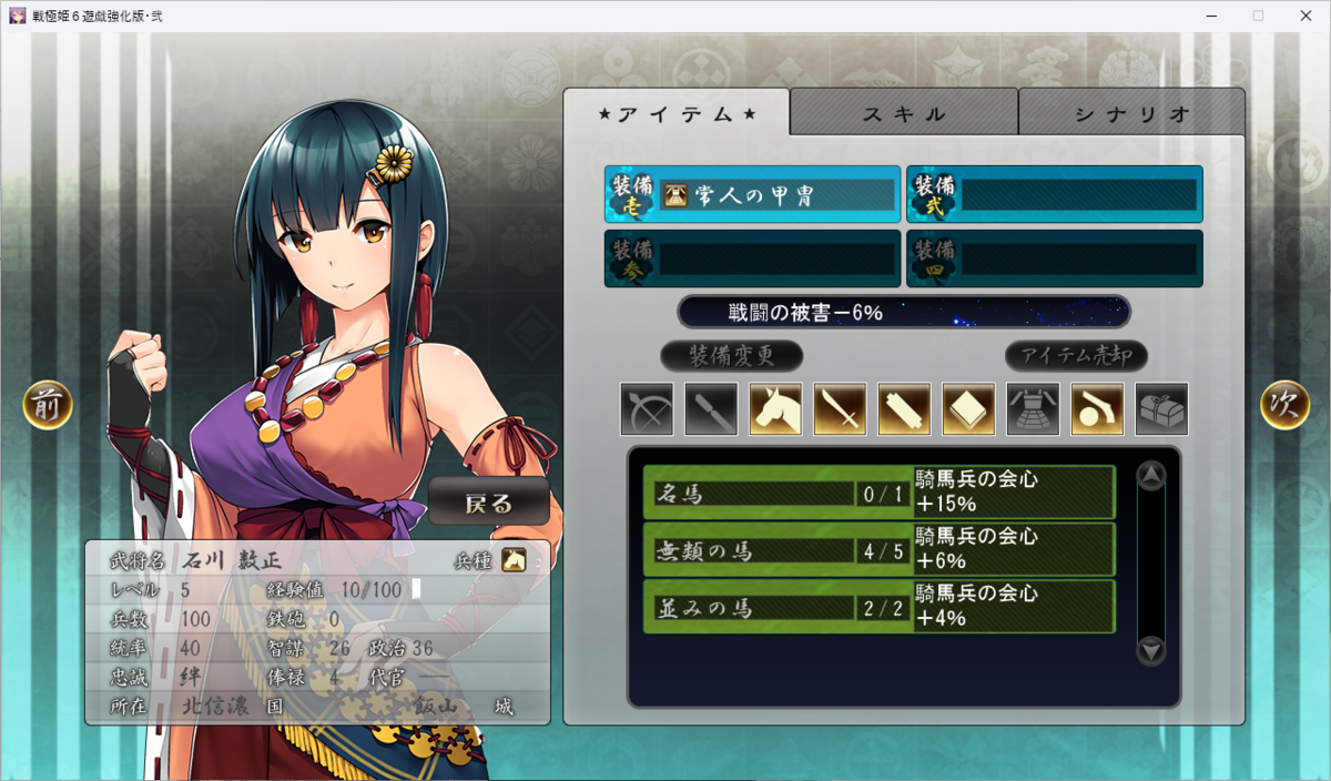 政治が高めで野戦には物足りない数値です。