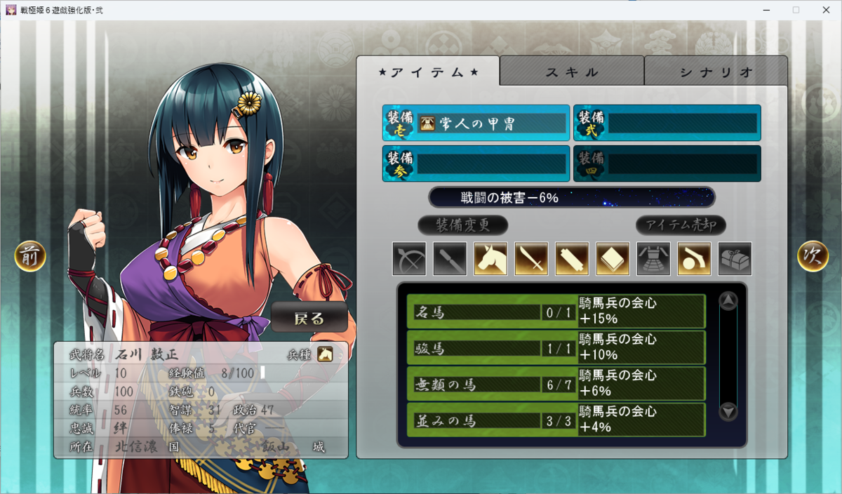 なお、八犬伝ルートでは同じく野戦がきついですが、野戦イベント後に武将とともに装備も消滅するので意味がありません。