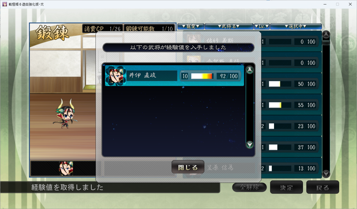 数人のレベル極にすることが不可以外の全ての武将をレベル極にして、北条家ルートのクリアとなります。