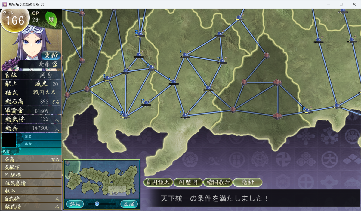 【戦極姫6】北条家ルート攻略手順㊻【161ターン目~エンディング&クリアまで】