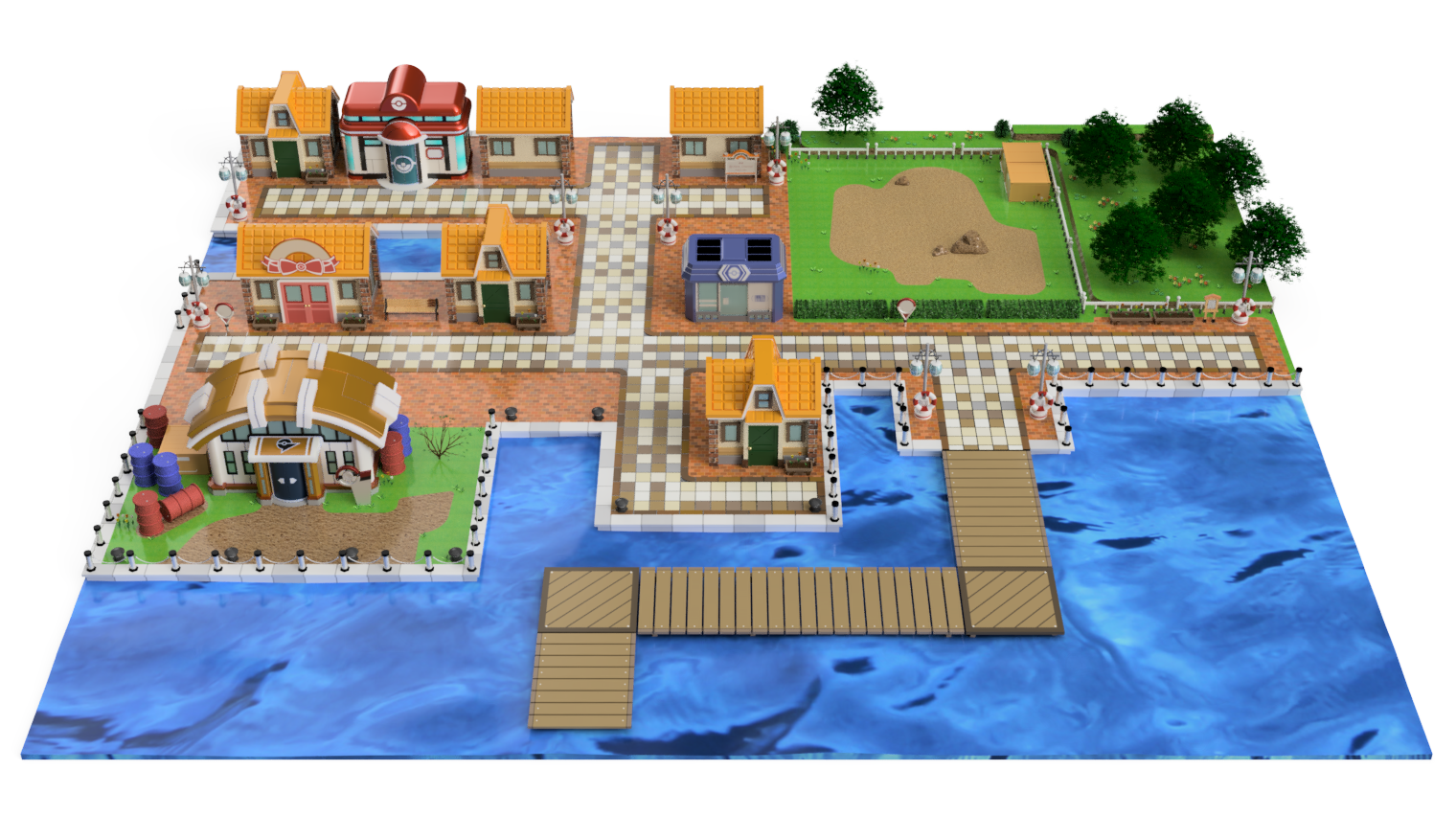 参考【ポケモン3Dモデル】クチバシティの町が完成しました!